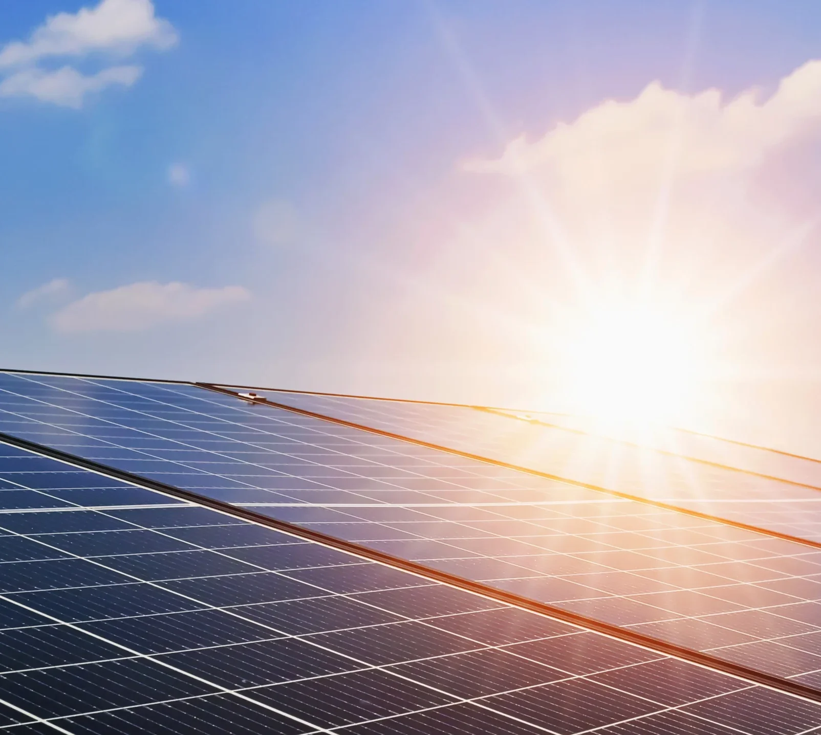 Rain drops and sun reflection on solar panels